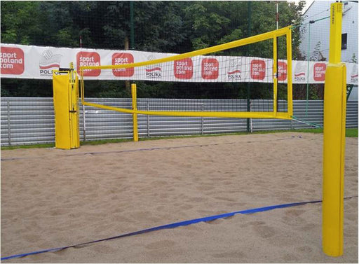 Beachvolleybollstolpar Tävling med remskivor ochmarkhylsor som fästs i fundamentet.Beachvolleybollstolparna är runda och har en diameterpå 83 mm. S...